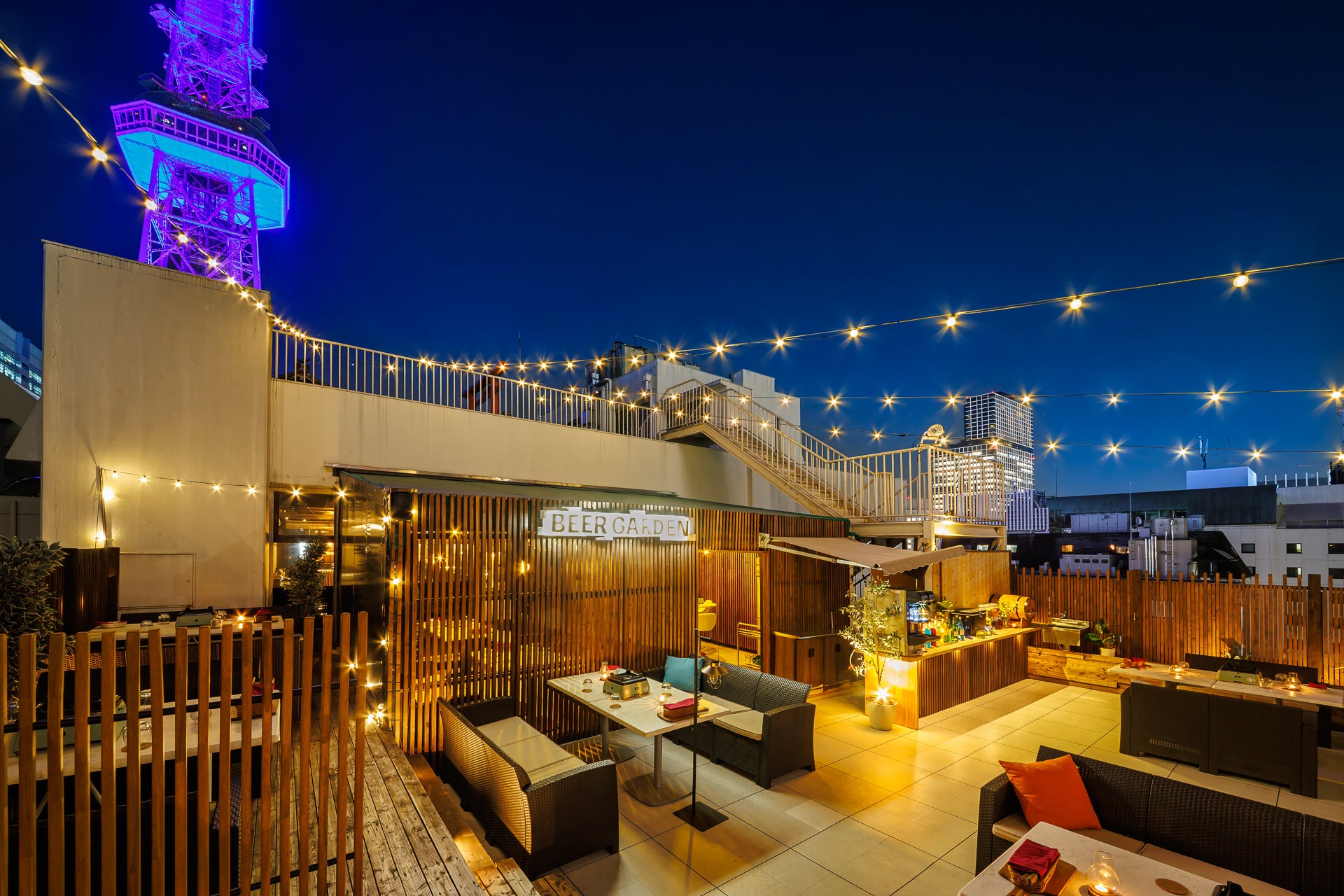 名古屋市のランドマークとして知られるMIRAIタワーを一望できるロケーションに『都会派』をテーマにラグジュアリーで開放的なルーフトップビアガーデンをご用意いたしました。