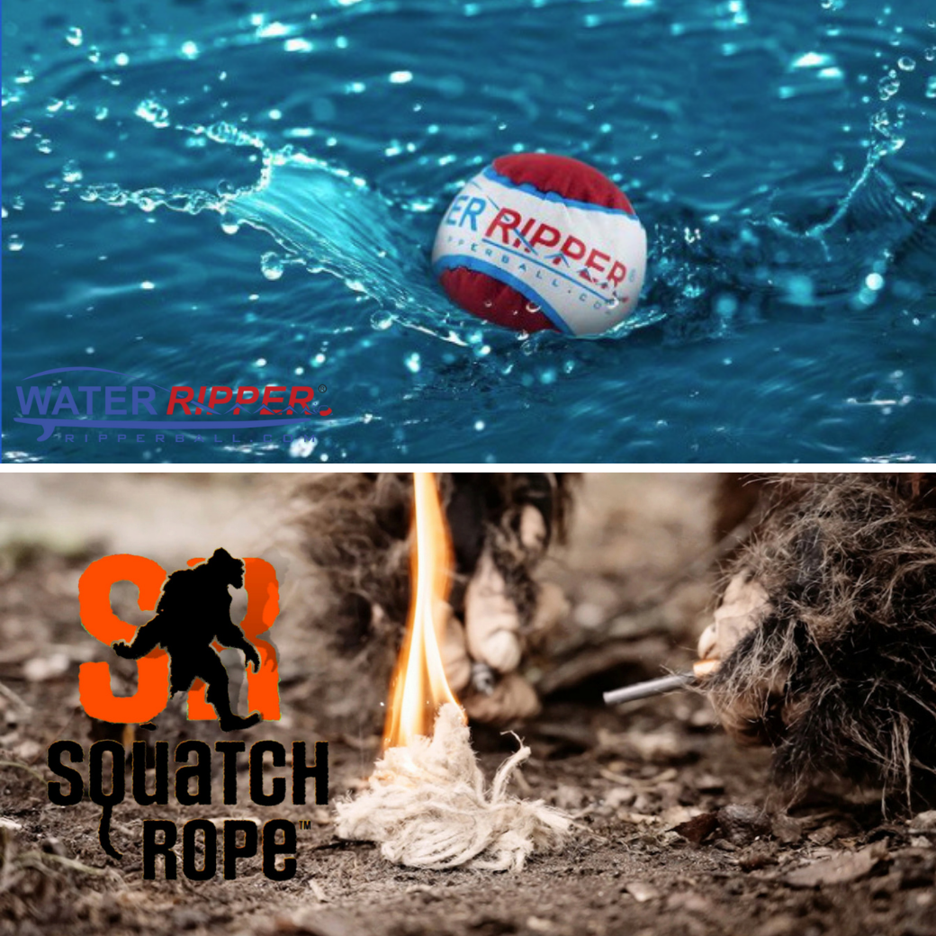 その名も「耐風耐水着火剤のSquatch Rope」と「大人の水切りボールWater Ripeer」。