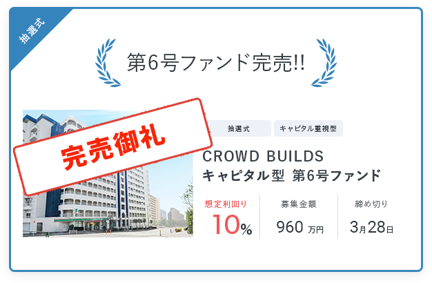 CROWD BUILDS キャピタル型第6号ファンドが満額調達完了