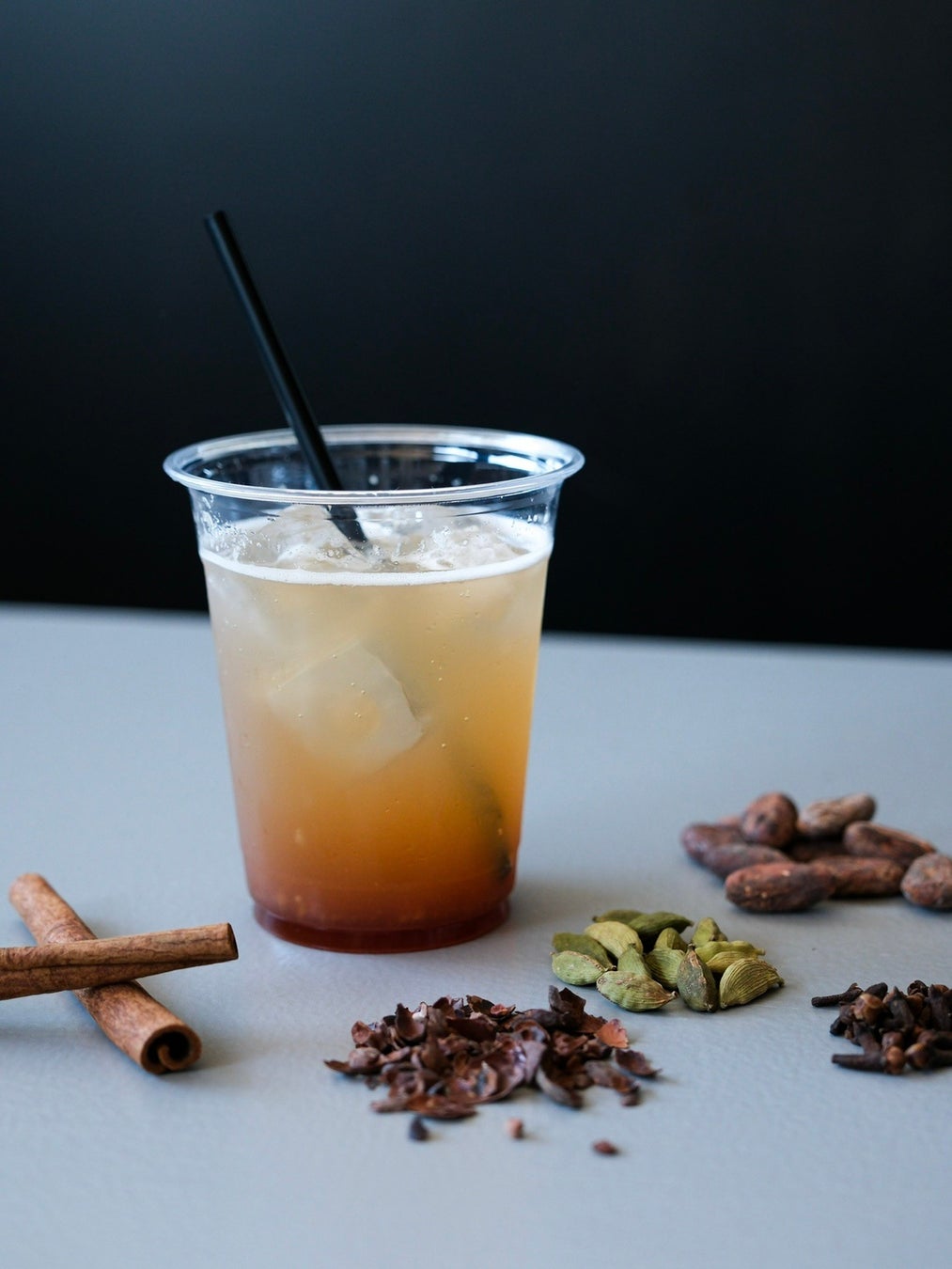 「わたし、ローチョコレート」では、チョコレート専門店ならではのドリンクも販売しています。その一つがカカオ×スパイスの自家製クラフトコーラ「CACAO COLA」。チョコレートを製造する過程で出る、通常廃棄するカカオハスク(カカオ豆の皮)を有効活用して作られています。厳選されたスパイスときび砂糖を使用したカカオがふわっと香る新感覚のクラフトコーラで、ぜひ暑い夏に飲みたい爽やかな一品です。