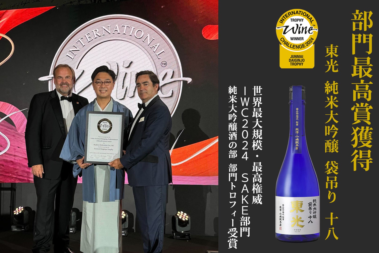 日本酒「東光」を醸造する株式会社小嶋総本店(所在地: 山形県米沢市、代表取締役社長: 小嶋健市郎)が製造する「東光 純米大吟醸 袋吊り 十八 」が、IWC(インターナショナル・ワイン・チャレンジ) 2024のSAKE部門純米大吟醸酒の部において出品された454銘柄中第1位の評価である部門トロフィーを受賞いたしました。