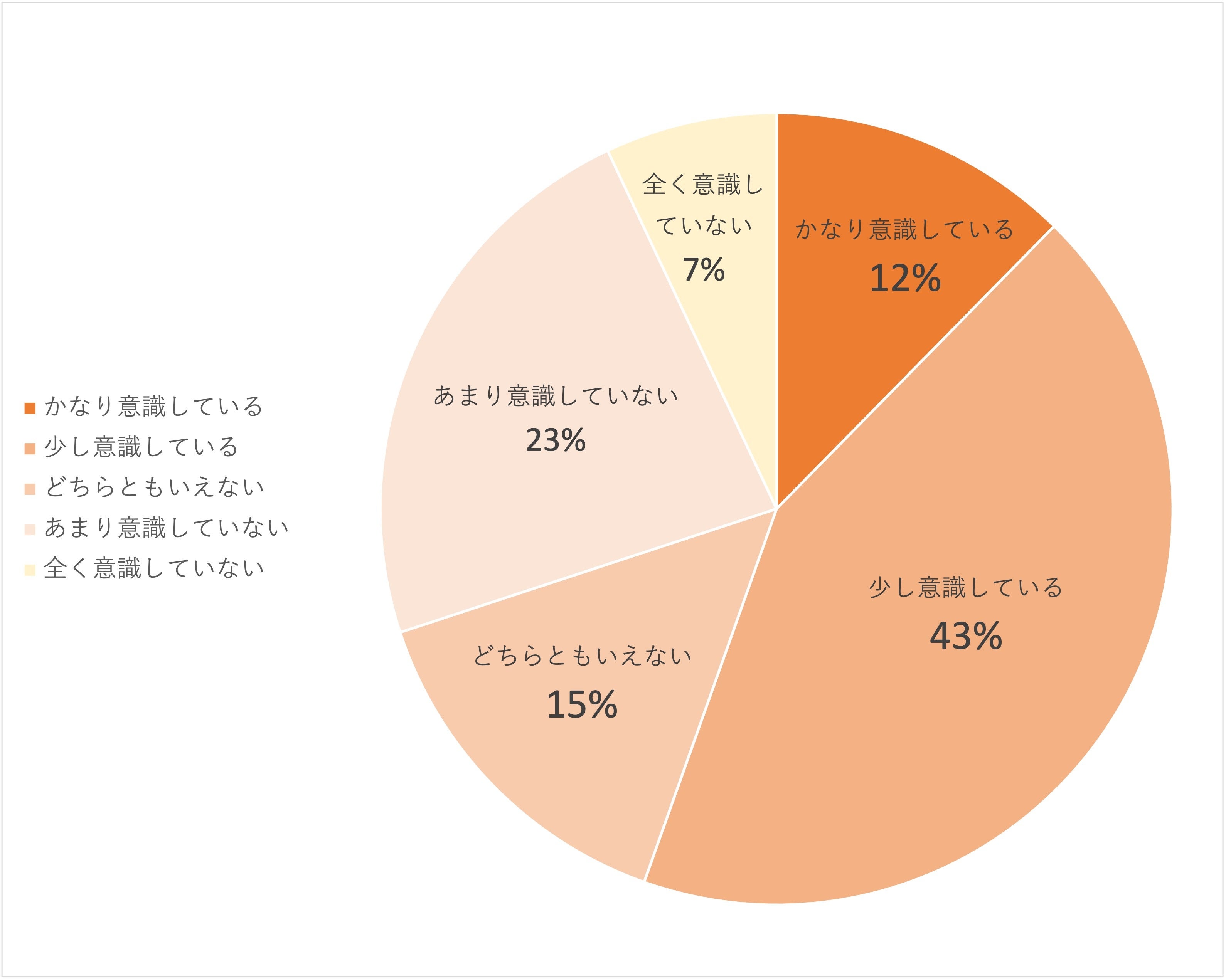 栄養バランスへの意識を詳しく調査するため、「普段、主食・主菜・副菜が揃った食事を意識していますか?」(n=599)と質問したところ、意識していると回答した方は55%と、全体の半分程度の割合となった。