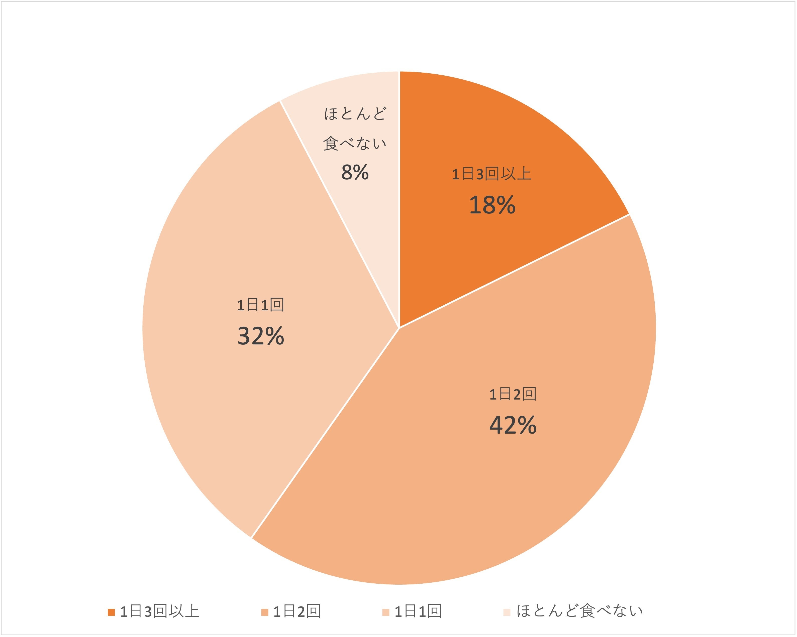 同様に、栄養バランスへの意識を詳しく調査するため、「野菜はどれくらいの頻度で食べますか?」(n=599)と質問した。結果は1日3回以上が18%、1日2回以上は42%、1日1回が32%、ほとんど食べないが8%となった。
