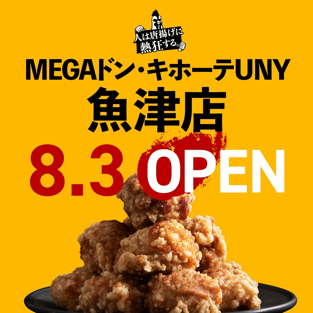 ・8月3日(水):富山県4店舗目となる、テイクアウト専門店「人は唐揚げに熱狂する。MEGAドン・キホーテUNY魚津店」(店舗所在地:富山県魚津市住吉 メガドンキユニー魚津店前)