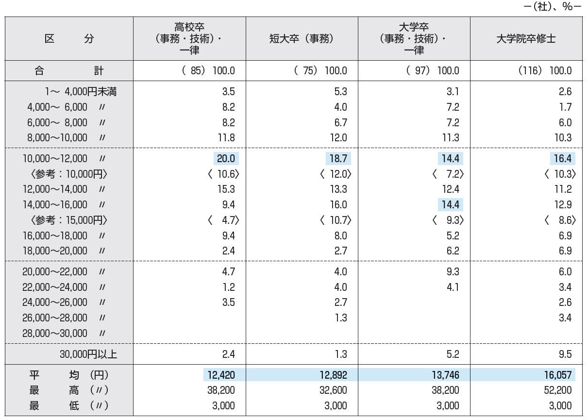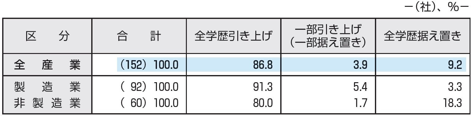[注]高校卒・大学卒は、「一律」のほかに「基幹職・補助職」別でも調査している(以下同じ)。