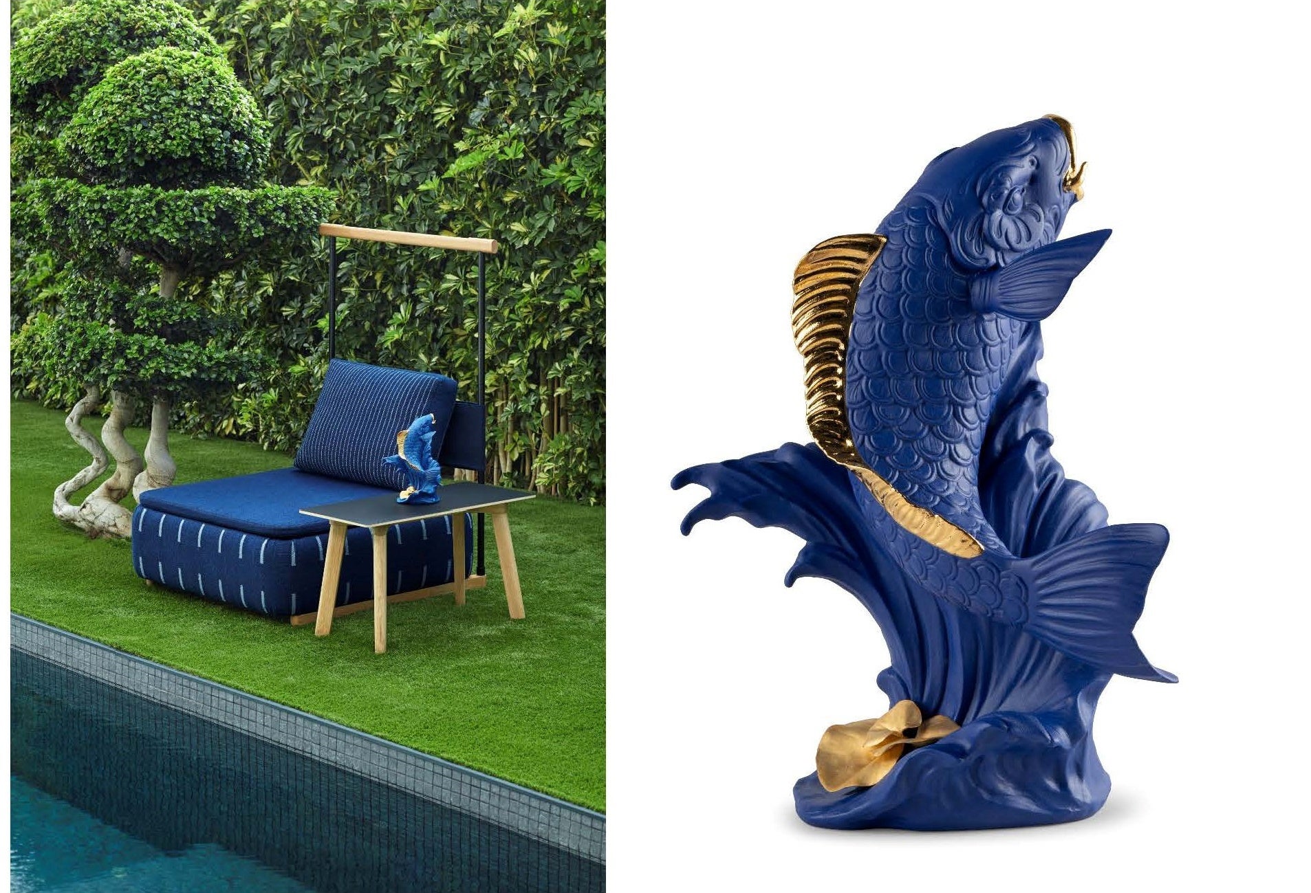 芸術家イヴ・クライン由来のクラインブルーカラーで展開するBold Blueコレクション。ベルベットのような質感が、彫刻的な鯉の仕上がりを際立たせ、インテリアに新たなエネルギーと個性を与えます。
