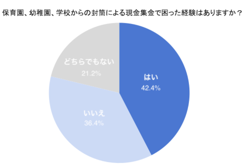 国内のキャッシュレス化が進むなかでも、約4割以上の保護者が「現金集金」に困った経験があり