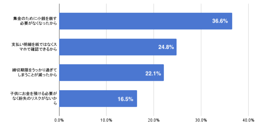 他にも、「支払い明細を紙ではなくスマホで確認できるから」とあるように、日常のお買い物同様、支払管理をスマホで完結できることに利点を感じる方が多いことも推測されます。