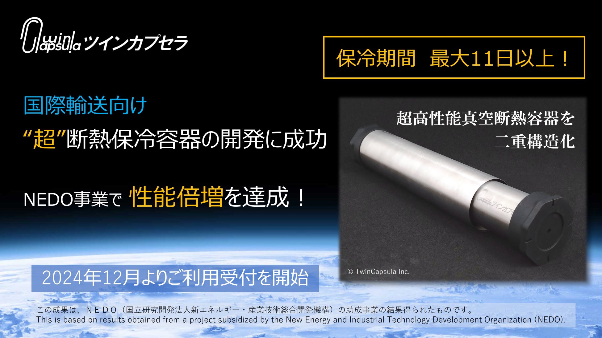 「最大11日以上」温度維持! 【ツインカプセラ形態】の製品化で 国際保冷輸送の「温度逸脱リスク」と「輸送コスト」を大幅低減