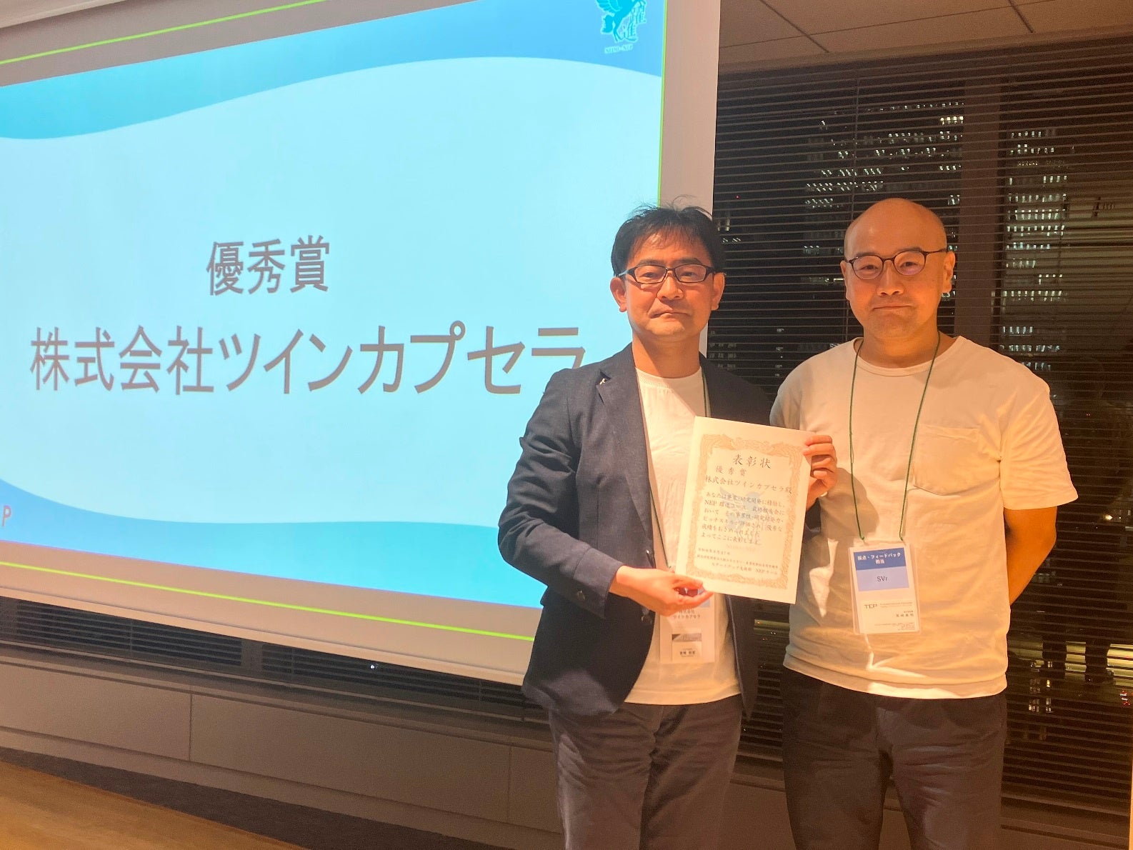 ツインカプセラは、2024年8月27日に開催されたNEDOのNEP 事業の最終成果報告会において、「性能倍増型”超”断熱保冷容器」の開発成果を発表し、「優秀賞」を受賞致しました(下写真:表彰式の様子)。