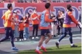 笑顔になってほしいという思いから、試合開始前に行われるセレモニーにおいて、ピッチ上で一