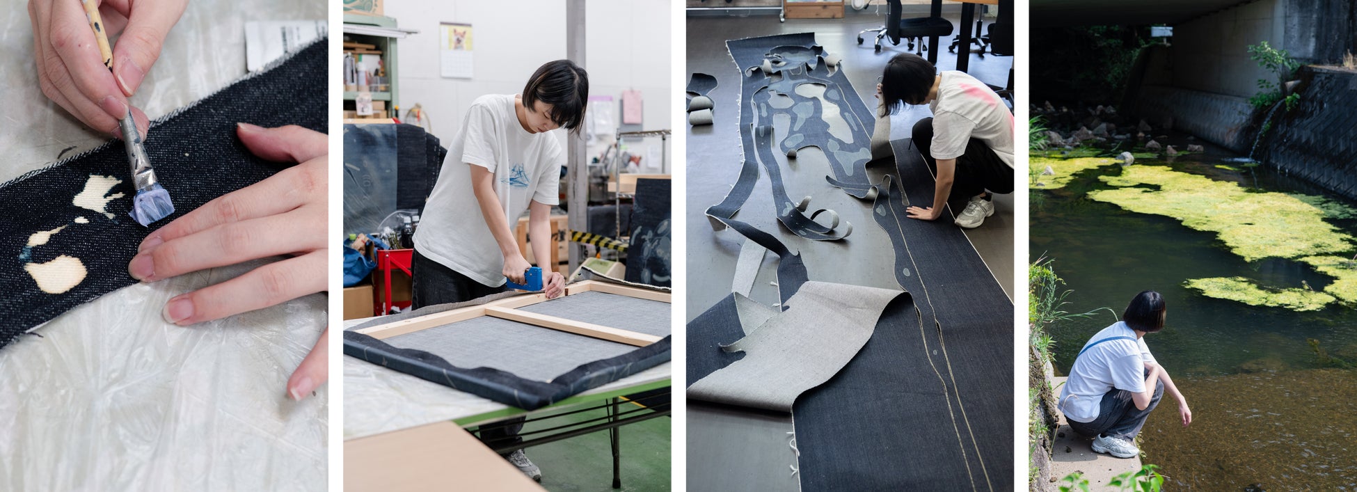 「この6か月間で、初めて目にするものに無数に出会い、また異なる角度から世界を見直す機会に恵まれました。新しい風景を探索し、クロキの工場のリズムに身を浸すことは、とても新鮮で刺激的でした。“傷”という概念に惹かれると同時に、“声”というテーマにも関心を持ちました。シャトル織機の音、周囲の環境音、景色の移ろい——それらが重なり合い、一つの“声”として響いていたのです。この経験は、デニムを用いた作品にとどまらず、サウンド作品やキャラクター創作へと広がり、クロキそのものの“声”を探る試みにつながりました。支えてくださったLVMH メティエ ダールとクロキの皆さまに心から感謝します。このレジデンスは、私の芸術観だけでなく、魂そのものを豊かにしてくれました。」