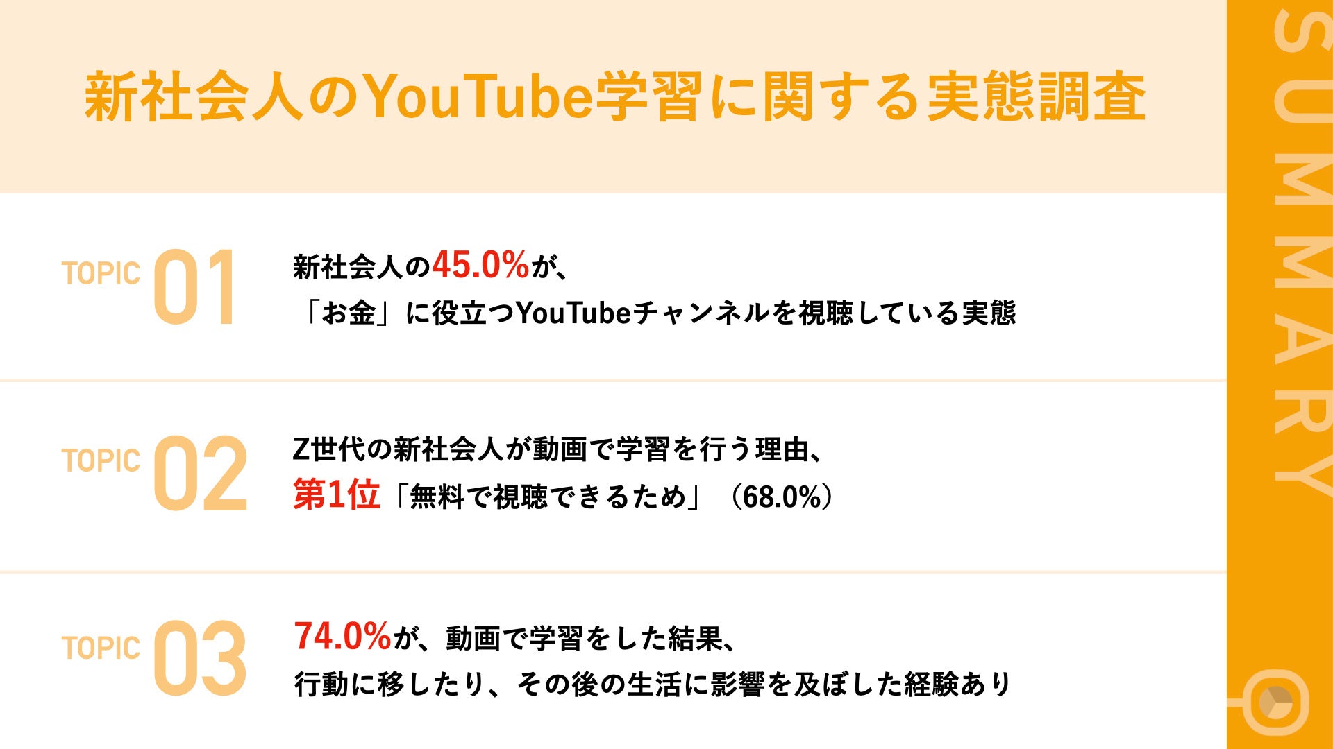 【新社会人に調査!YouTubeで何を学んでいる?】 45.0%が「お金」に役立つチャンネルを視聴! 動画で学習を行う理由、第1位「無料で視聴できるため」