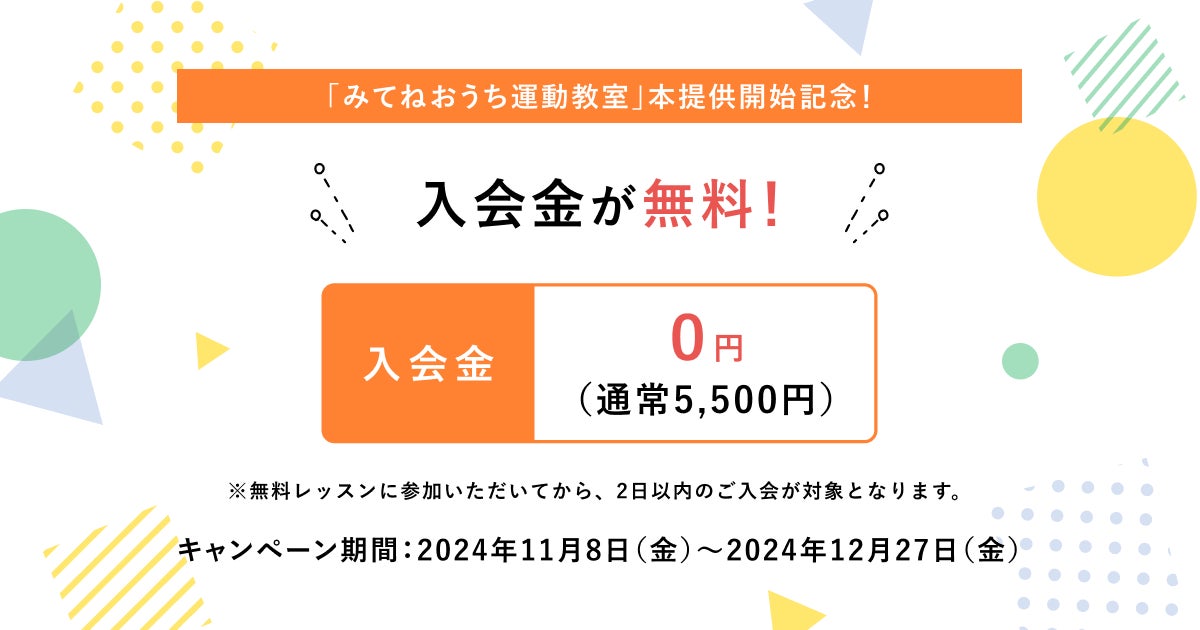 キャンペーン名称 :「みてねおうち運動教室」本提供開始記念!入会金無料キャンペーン