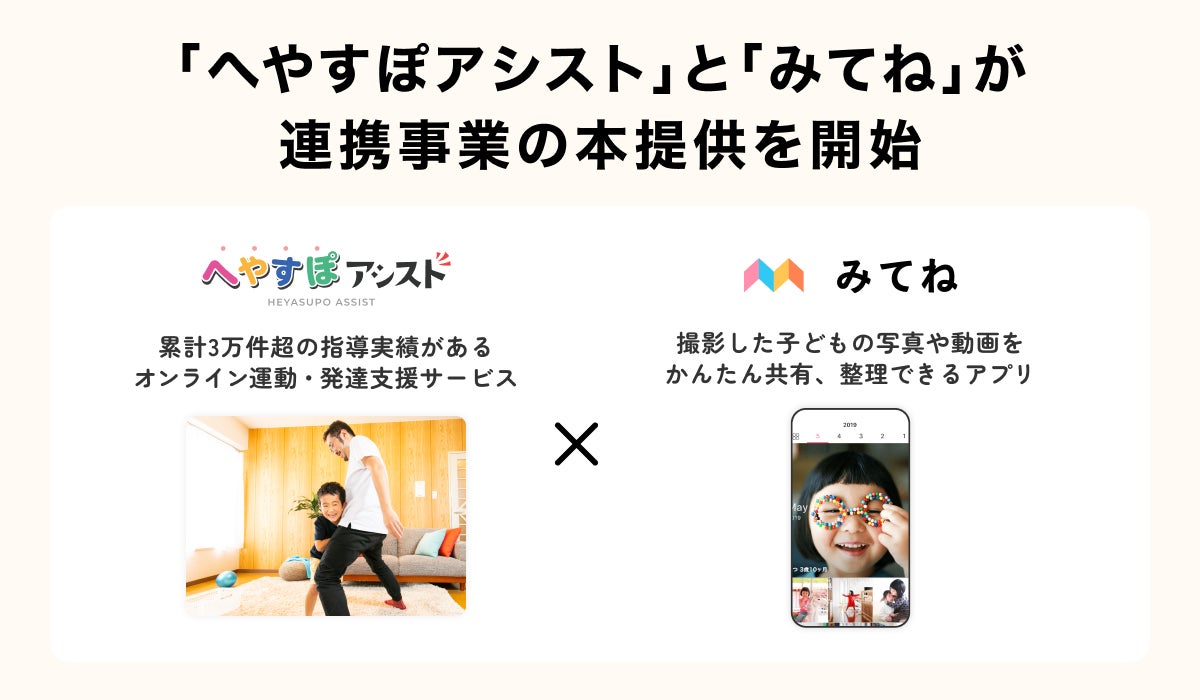 今すぐ・全国どこにいても受けられる、オンライン運動・発達支援サービス「へやすぽアシスト」を運営するPAPAMO株式会社(本社:東京都渋谷区、代表取締役:橋本咲子、以下PAPAMO)と株式会社MIXI(本社:東京都渋谷区、代表取締役社長 上級執行役員 CEO:木村 弘毅、以下MIXI)は、資本業務提携を開始し、2024年11月8日(金)より「みてねおうち運動教室」の本提供を開始したことをお知らせします。