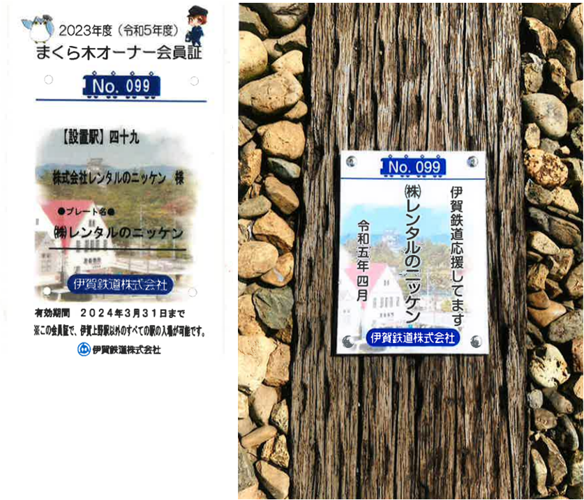 レンタルのニッケンは伊賀鉄道の「まくらぎオーナー」になりました