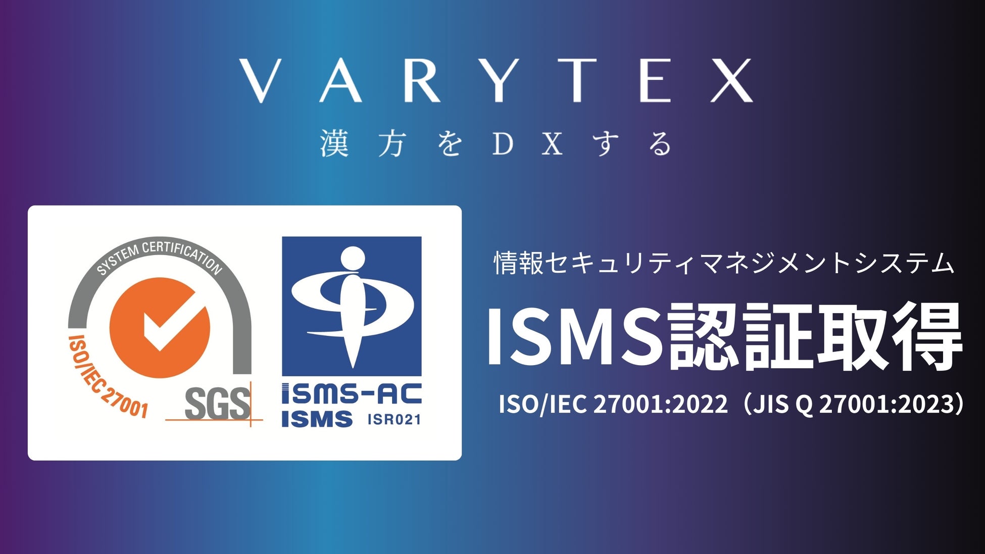 漢方をDXするVARYTEXが ISMSの国際規格ISO/IEC 27001:2022の認証を取得
