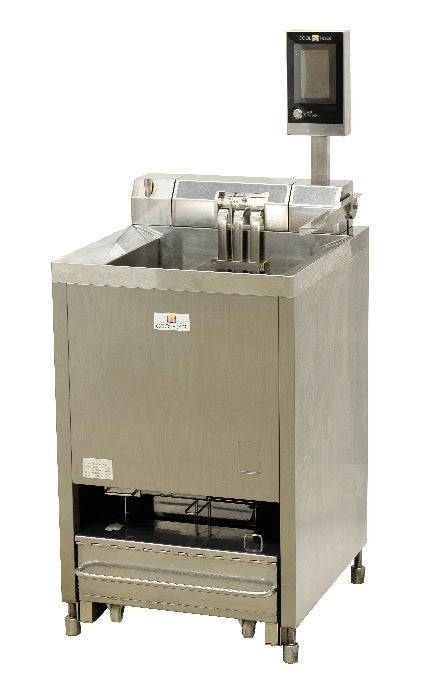油ハネ、油煙、オイルミストの発生を抑え、本体からの輻射熱も極少なので厨房環境を快適に保ちます。7リットル機では専用の油回収装置、18リットル機では内蔵の揚げカス自動回収機能により油の濾過も不要となります。