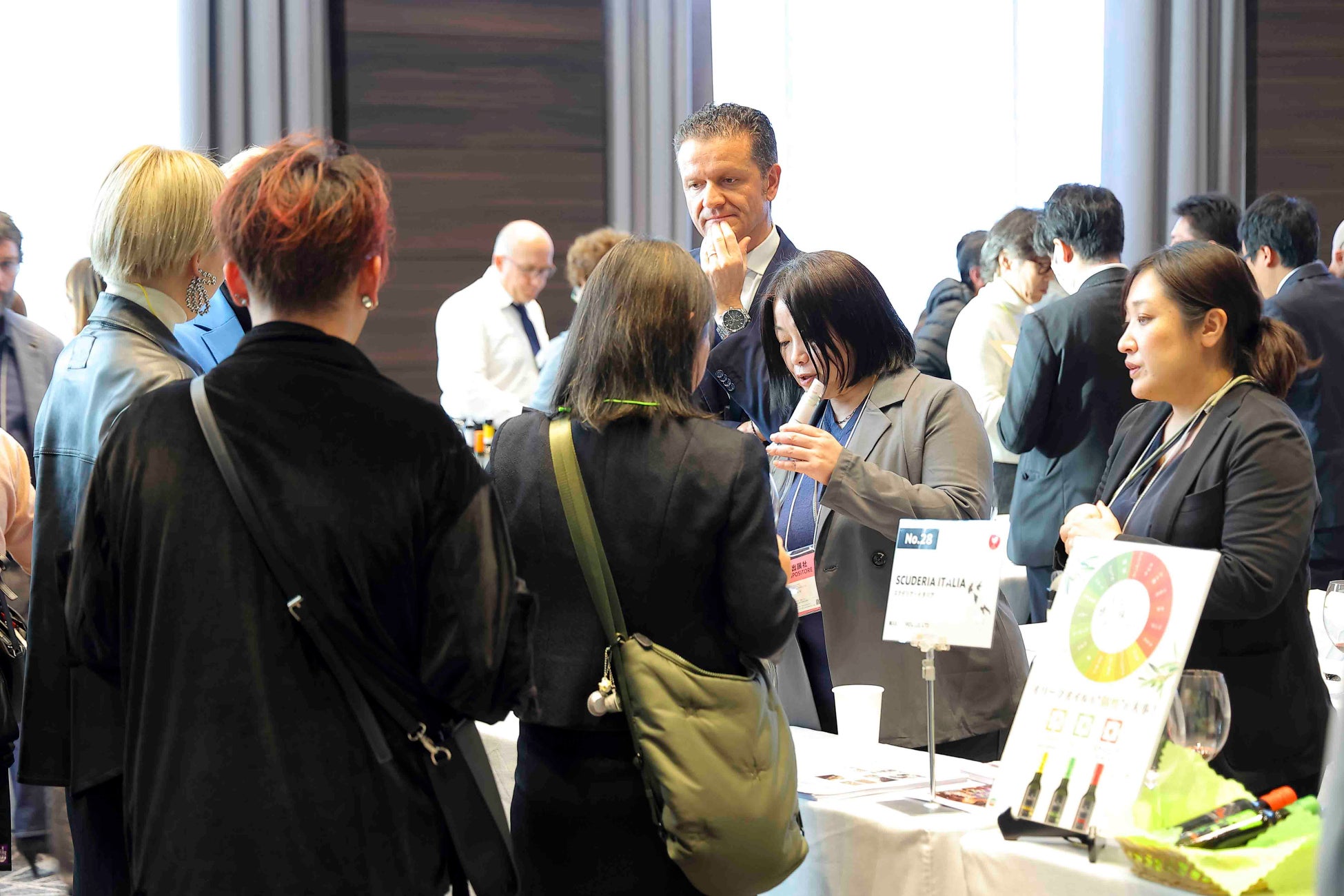 会場にはイタリアワインのほか、リキュールや蒸留酒(ノンアルコール含む)、エクストラヴァージンオリーヴオイル、アロマタイズドオリーヴオイルなどが並び、大阪会場は291名、東京会場は347名の業界関係者が来場して活発な商談が展開され、新規商談につながりそうな案件も複数見られました。今後の進展が期待されます。
