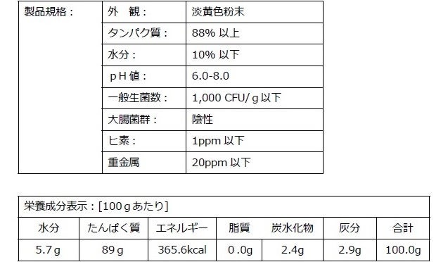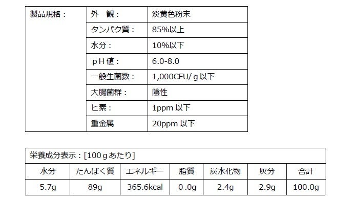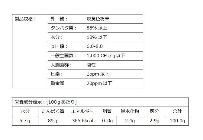 | 用 途: | タンパク質補給食品専門のタンパク質原料 |
