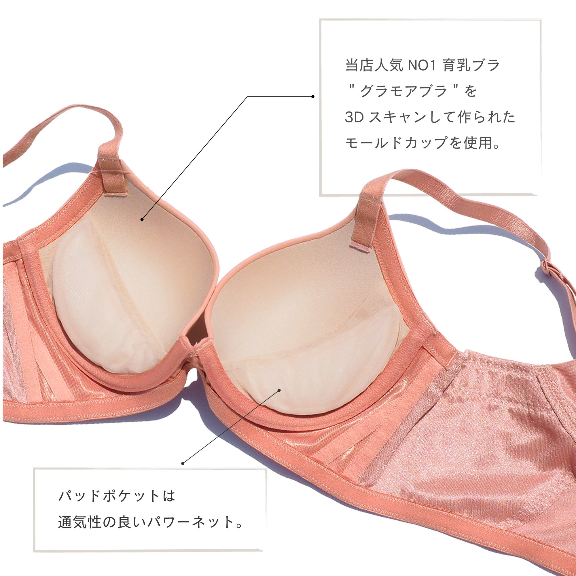 1.グラモアブラの機能そのままにモールドカップで再現、脇や背中のお肉をバストに集肉