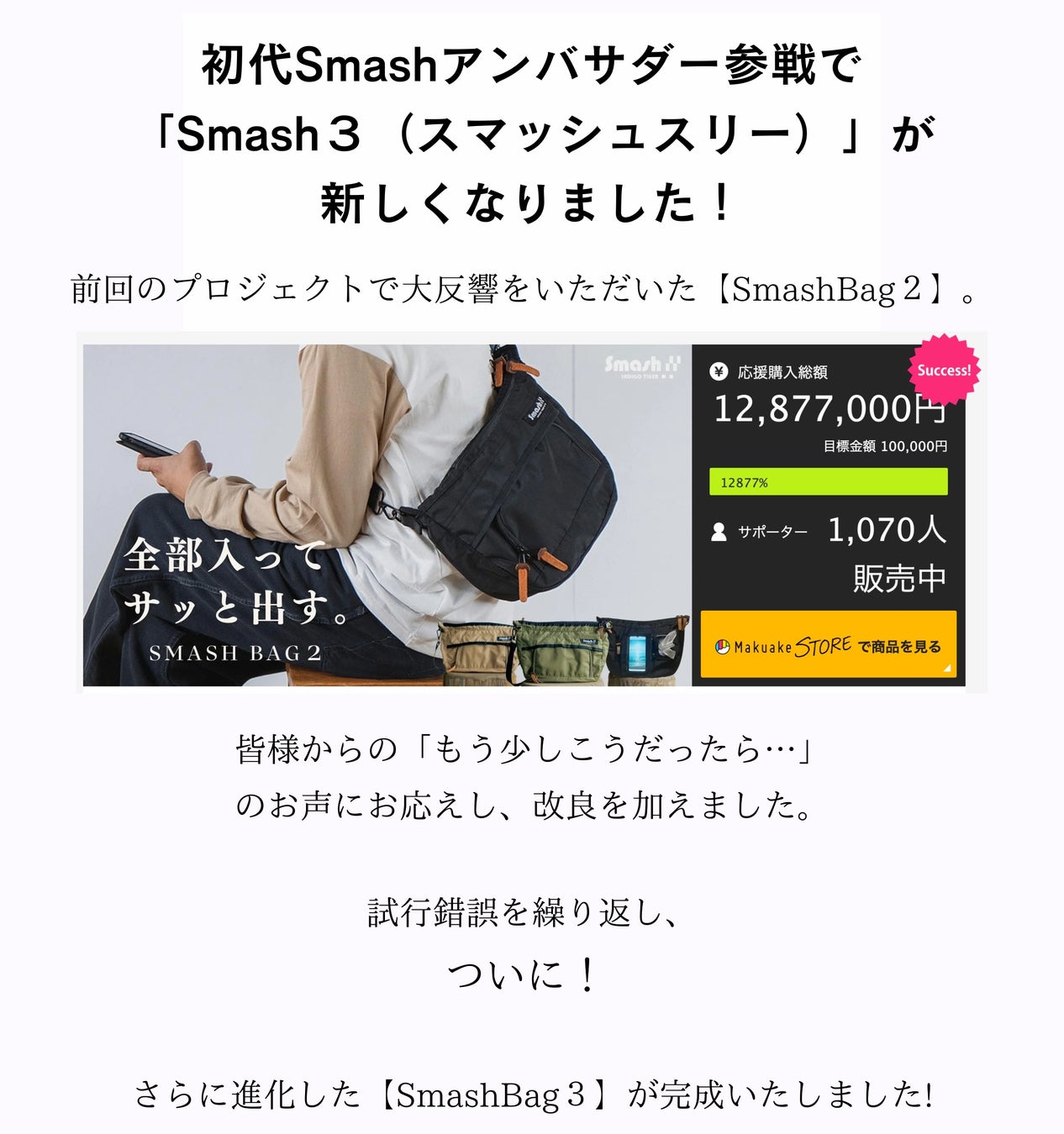 新商品「Smashbag3」のクラウドファンディング開始のお知らせ