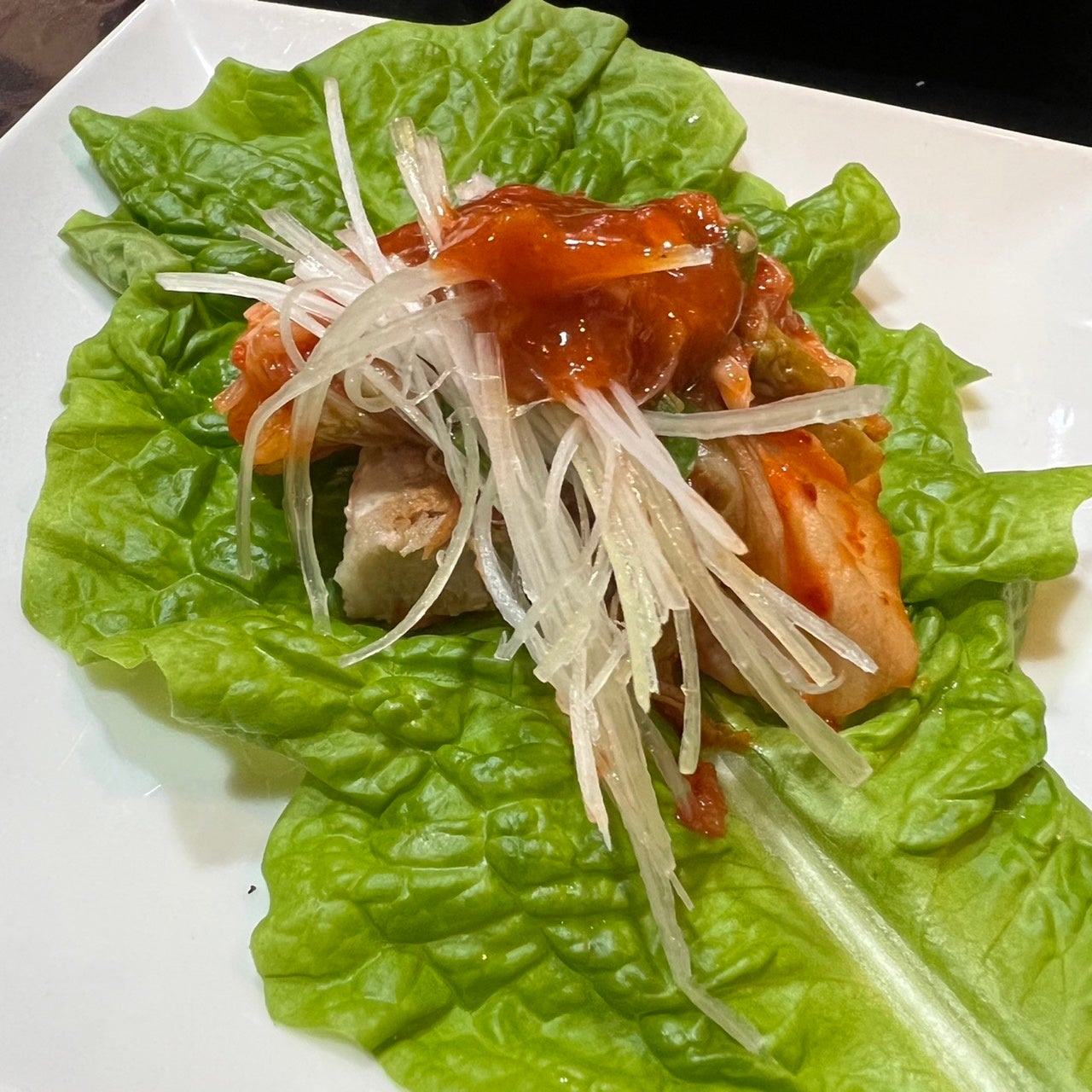 食べ応えがあり、肉汁があふれてくる豚バラ肉も、サンチュに巻いて食べることであっさりといただけます。