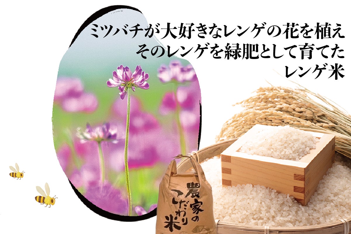 レンゲの緑肥で育ったお米を、農薬・化学肥料栽培期間中不使用のレンゲ米として発売。今年の新米から、リターンとしてお届けいたします。
