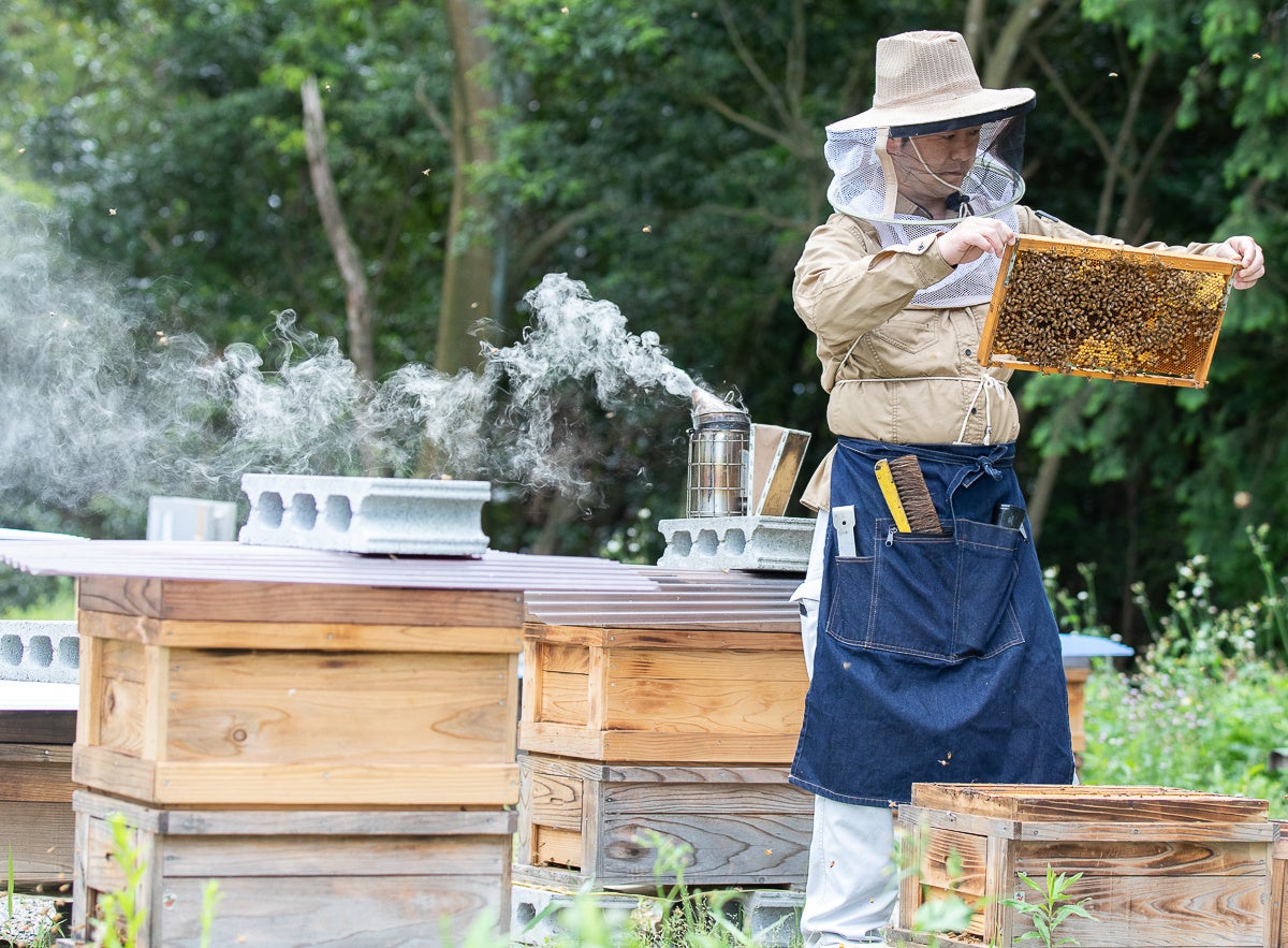 こちらの養蜂園では、パティシエも養蜂から全てを手がけるというのがコンセプト。養蜂農業の基礎を学び、日々ミツバチに素手で触れ合うことではちみつの有難みを皆様が肌で感じていらっしゃいます。