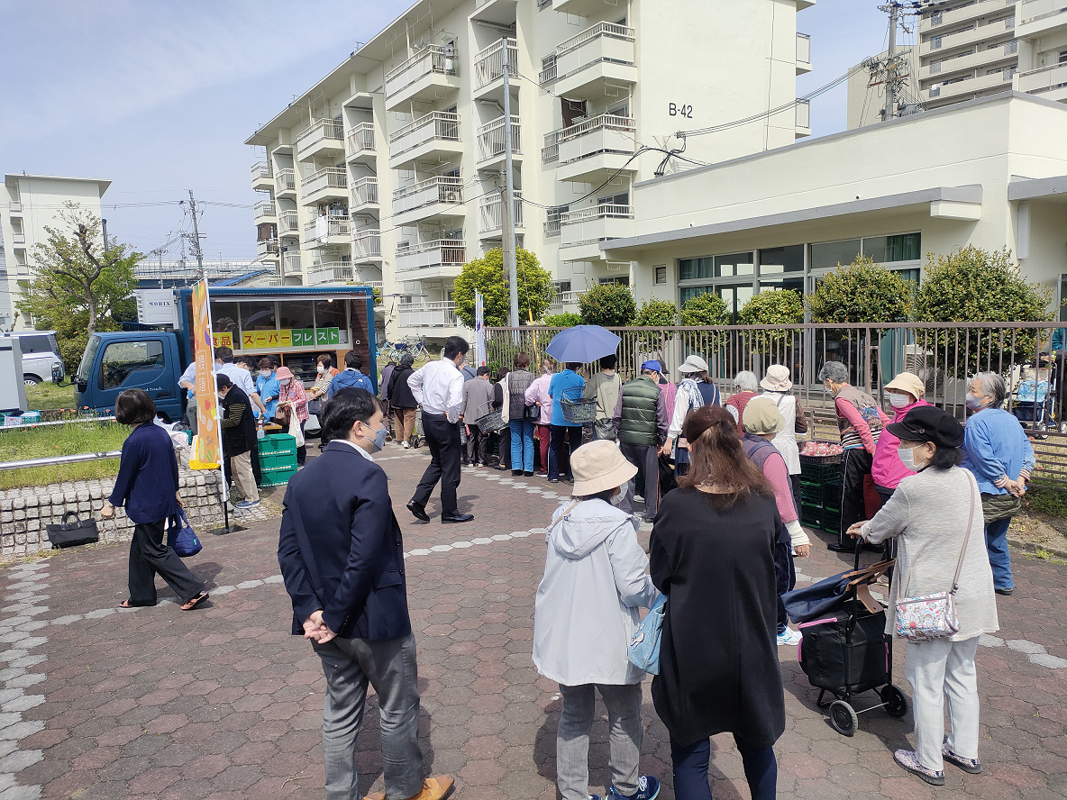 スーパーマーケット「フレスト」を運営する京阪ザ・ストアが市営門真住宅で行う移動販売を軸に、門真市や自治会が連携し、様々な活動を行います。