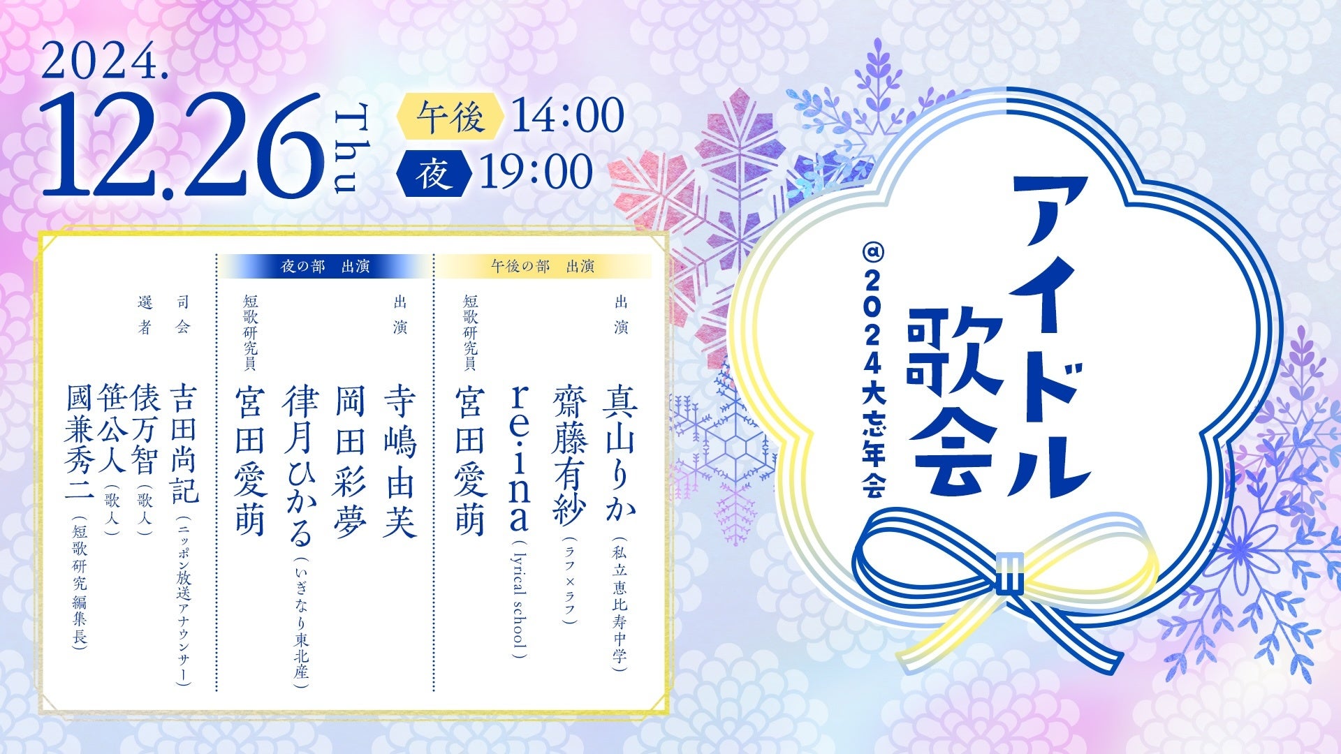 初の午後・夜2回開催! 大好評「アイドル歌会@2024大忘年会」12月26日開催!