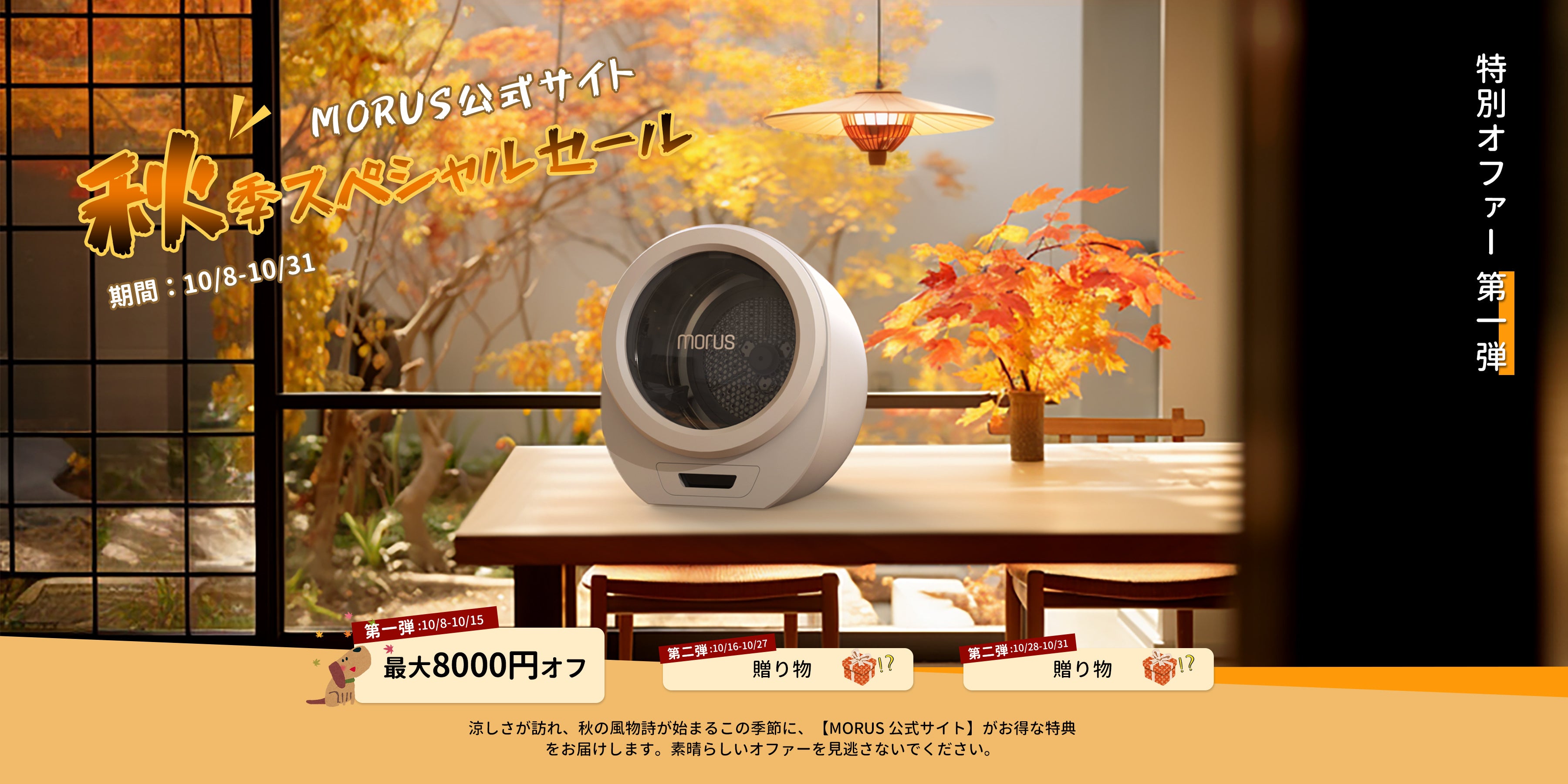 秋が深まると共に、着替える時やお風呂上がりなどに肌に触れた服の冷たさにヒヤッとすることが増えてきますので、また、秋はだんだんと気温が下がったり日暮れが早くなってきたりして朝乾かした洗濯物が夕方に乾いていないこともよくあり、そんな困りを持っている方の力になりたいと考え、Morusの公式ECサイトでは、秋のスペシャルセールを開催いたしました。