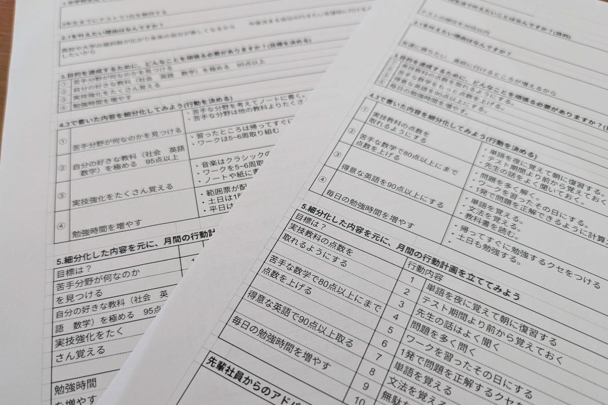 ■中学校生活での目標達成に向け、行動計画を立てるためのPDCA会議を体験