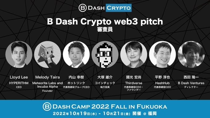 「B Dash Crypto 2022 Fall in Fukuoka」におけるweb3ピッチの審査員をHyperithm代表のロイド・リーが務めます。