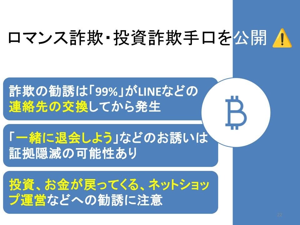 また、急激に増加しているSNS型ロマンス詐欺や特殊詐欺に関する注意喚起も実施いたしました。