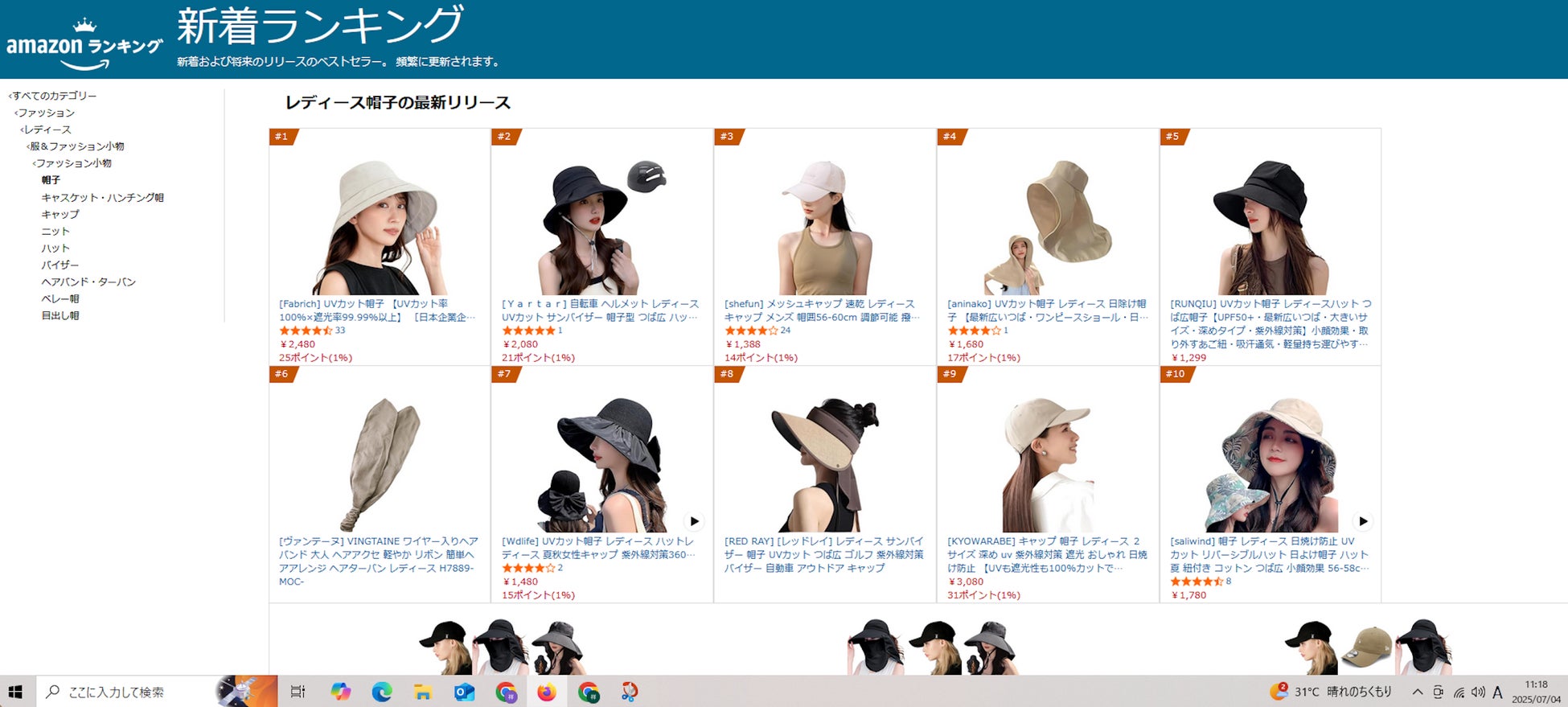本商品は発売から1ヶ月でAmazon新着ランキングレディース帽子部門で1位を獲得いたしました(2025年7月4日時点)。