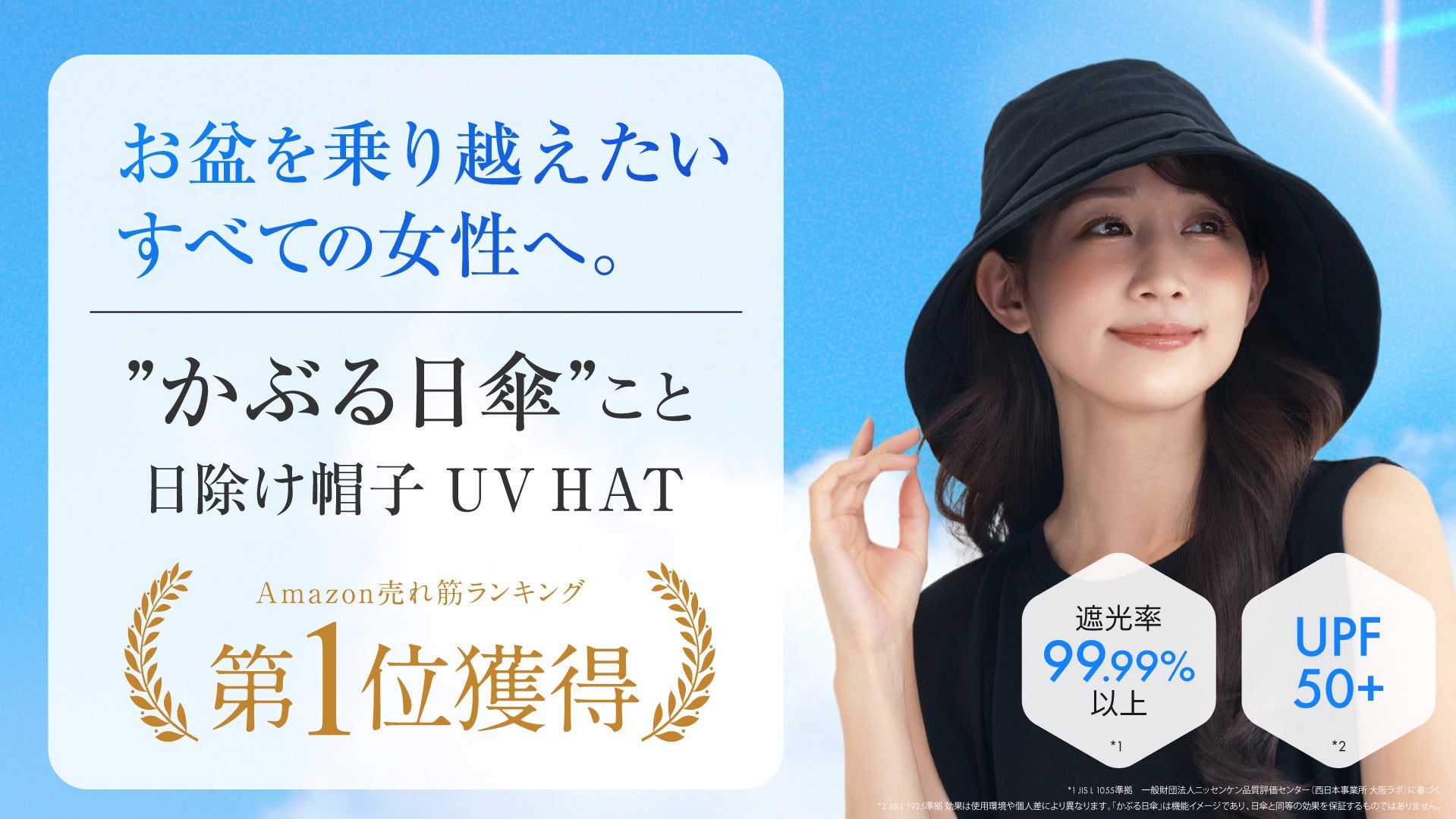 お盆の猛暑を乗り越えたいすべての女性へ。”かぶる日傘”こと日焼け帽子UV HAT、販売わずか1ヶ月でAmazon売れ筋ランキング1位を獲得!