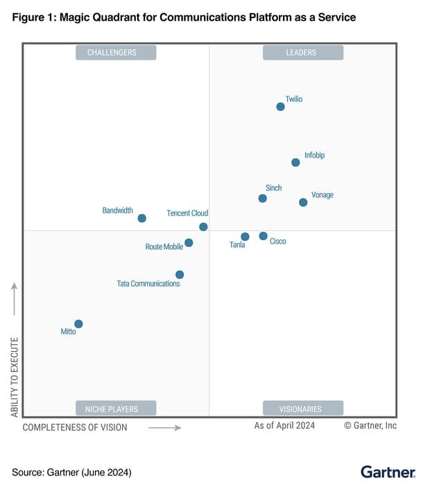 Gartner, Magic Quadrant for Communications Platform as a Service, By Lisa Unden-Farboud, etc., 1 July 2024