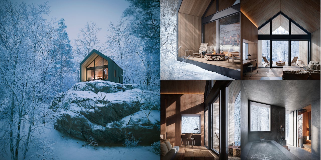 <MODEL S>総面積74.83㎡。最大2名で過ごせるテラスやサウナを備えた森の中の隠れ家。