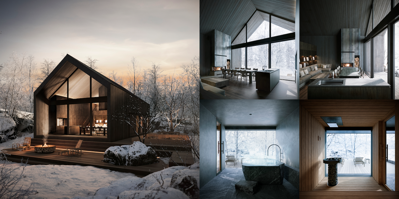 <MODEL L> 総面積315.20㎡。景色を望むサウナや水風呂、アウトドアリビングを備え、最大8名での滞在が可能。