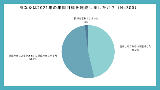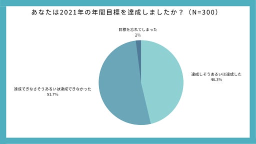 達成出来た人と達成できなかった人はほぼ半々で、2%ほど「忘れてしまった」という人もいた。