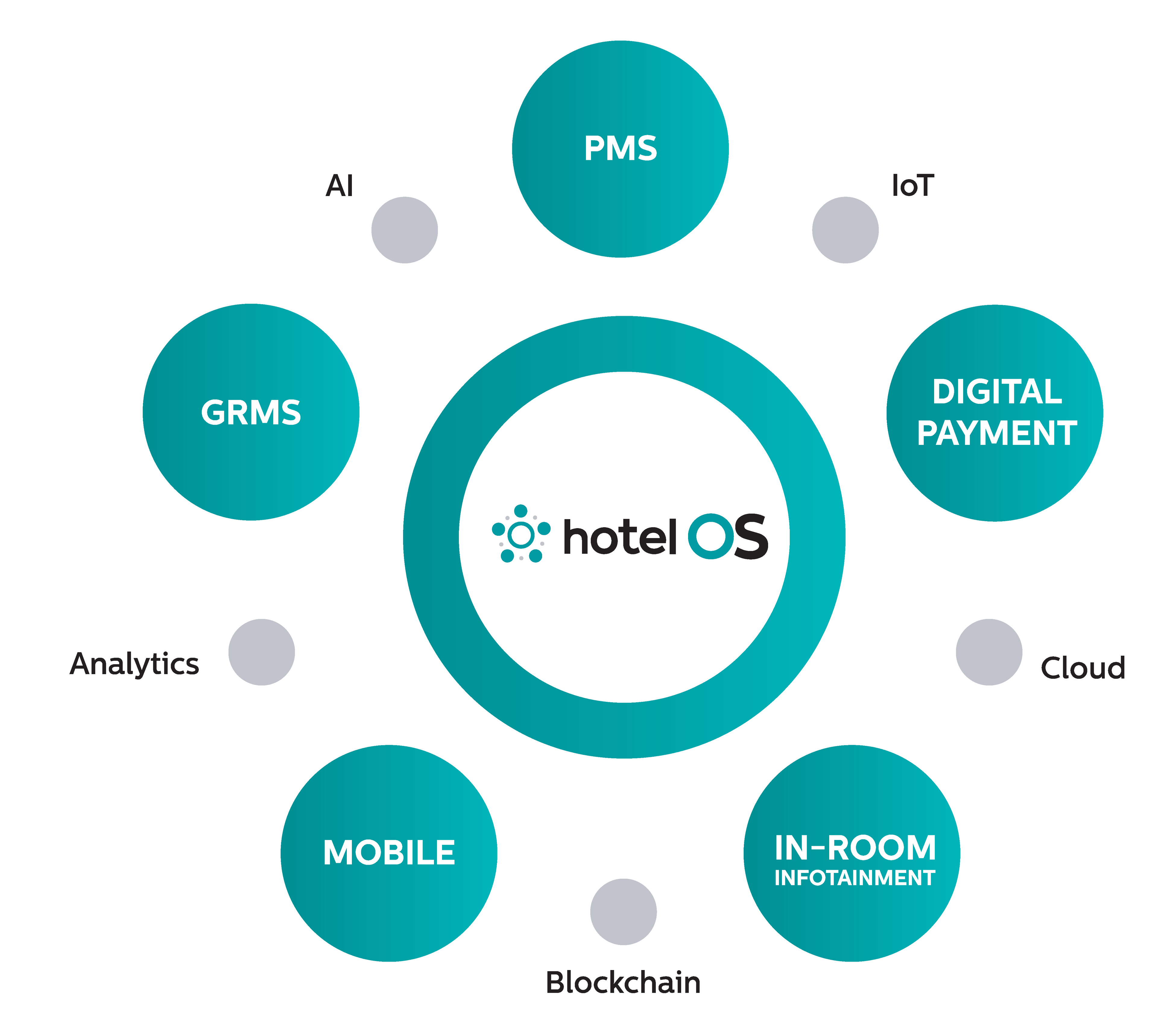 「hotelOS」は、システム間、そして⼈と⼈の距離を縮め、ホテルの新しいオペレーションをサポートし、まるごとスマートホテルにバージョンアップします。