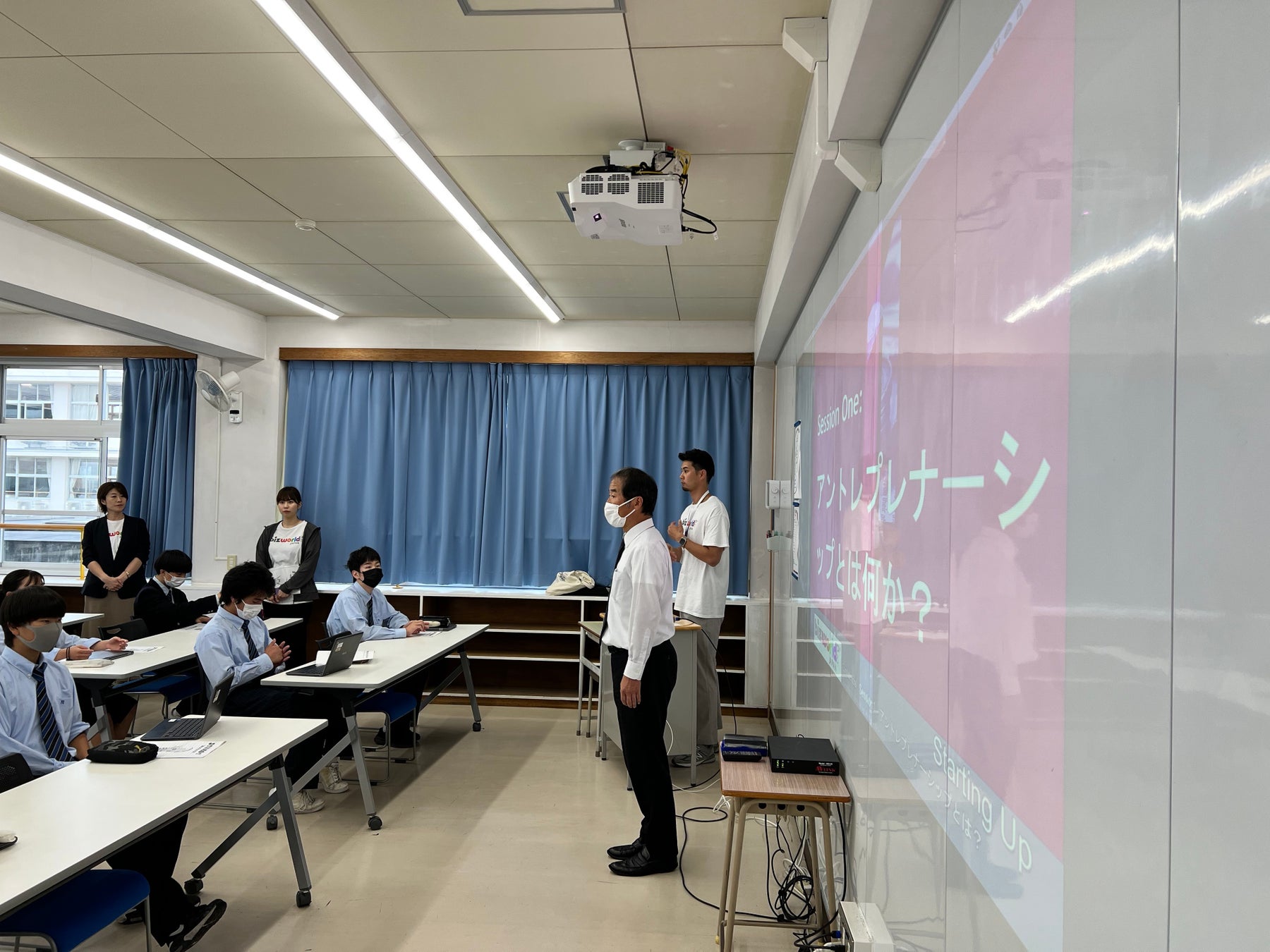 今年度は1クラス(約30人)が授業で講義を受講しました。報道関係者もいたので緊張している生徒もいましたが、1人の生徒の発表を皮切りに次々と発言しており、生徒同士のディスカッションが活発となっていました。起業したい生徒もおり、今後の講義で生徒の起業に対する興味などの意識が変化するのかが楽しみにです。
