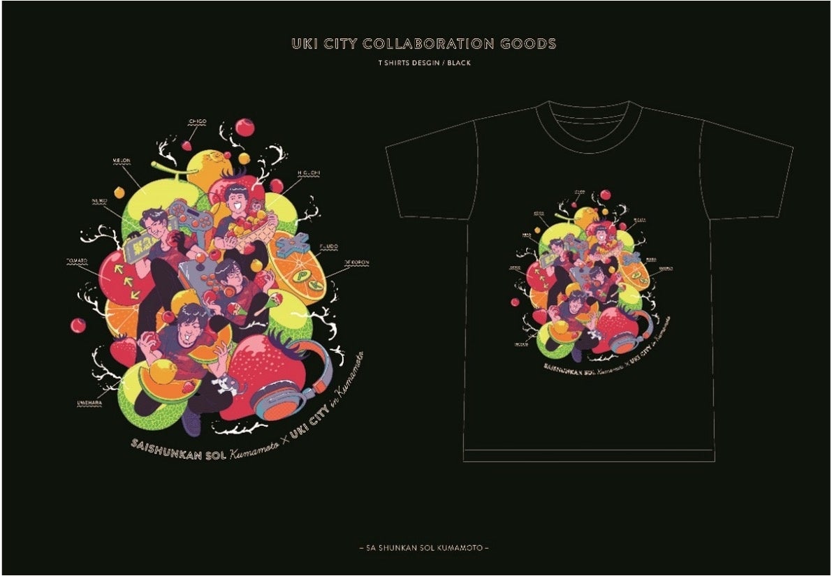 Saishunkan Sol 熊本は2024年1月より宇城市の運営する熊本県内初のeスポーツ施設「うきのば」のPR大使を務めており、これまでにも様々な取り組みをしてまいりました。また、2024年9月には宇城市在住のHayashi選手がチームに加入し、eスポーツを通した宇城市の盛り上がりの機運が高まる中で、Saishunkan Sol 熊本と宇城市のコラボレーションTシャツを『ふるさと納税返礼品』として提供する運びとなりました。Tシャツには、Saishunkan Sol 熊本のネモ選手・ひぐち選手・ウメハラ選手・ふ~ど選手と宇城市名産品とのコラボレーションが表現されており、ここだけでしか手に入らない品物となっております。