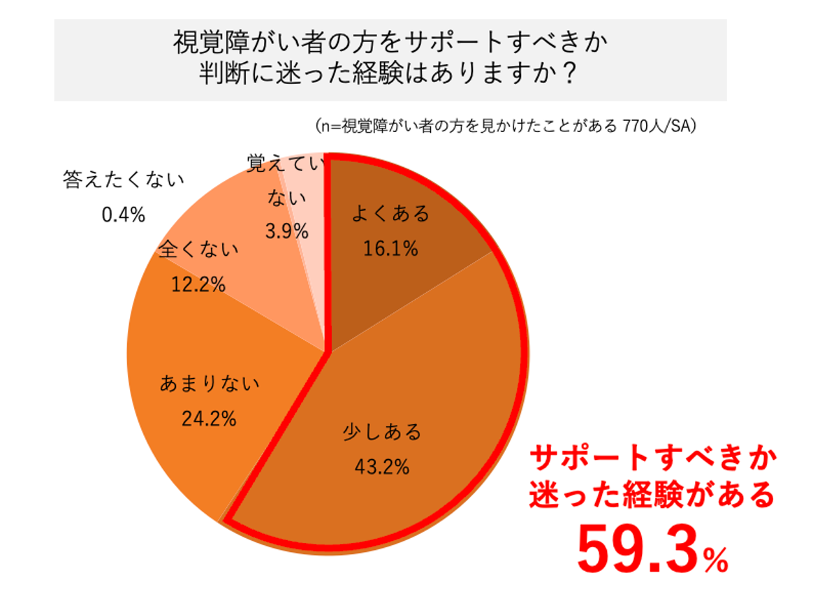 ・視覚障がい者の方をサポートすべきか判断に迷った経験がある人は59.3%に上った。
