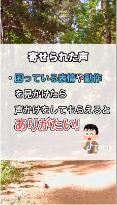 この動画をきっかけに、少しでも多くの方が周りへの思いやりを実行に移していただけることを願っています。ひいては、障がいの有無にかかわらず、互いが尊敬し合える社会になりますよう、尽力したいと考えています。