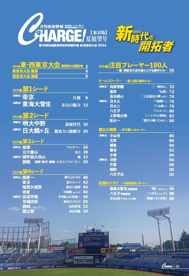 【月刊高校野球CHARGE!第106回全国高等学校野球選手権 東・西東京大会夏展望号】が全国書店、公式サイト、Amazon、ASA ※1、セブンイレブン ※1 などで発売 ※1 東京都内、一部を除く