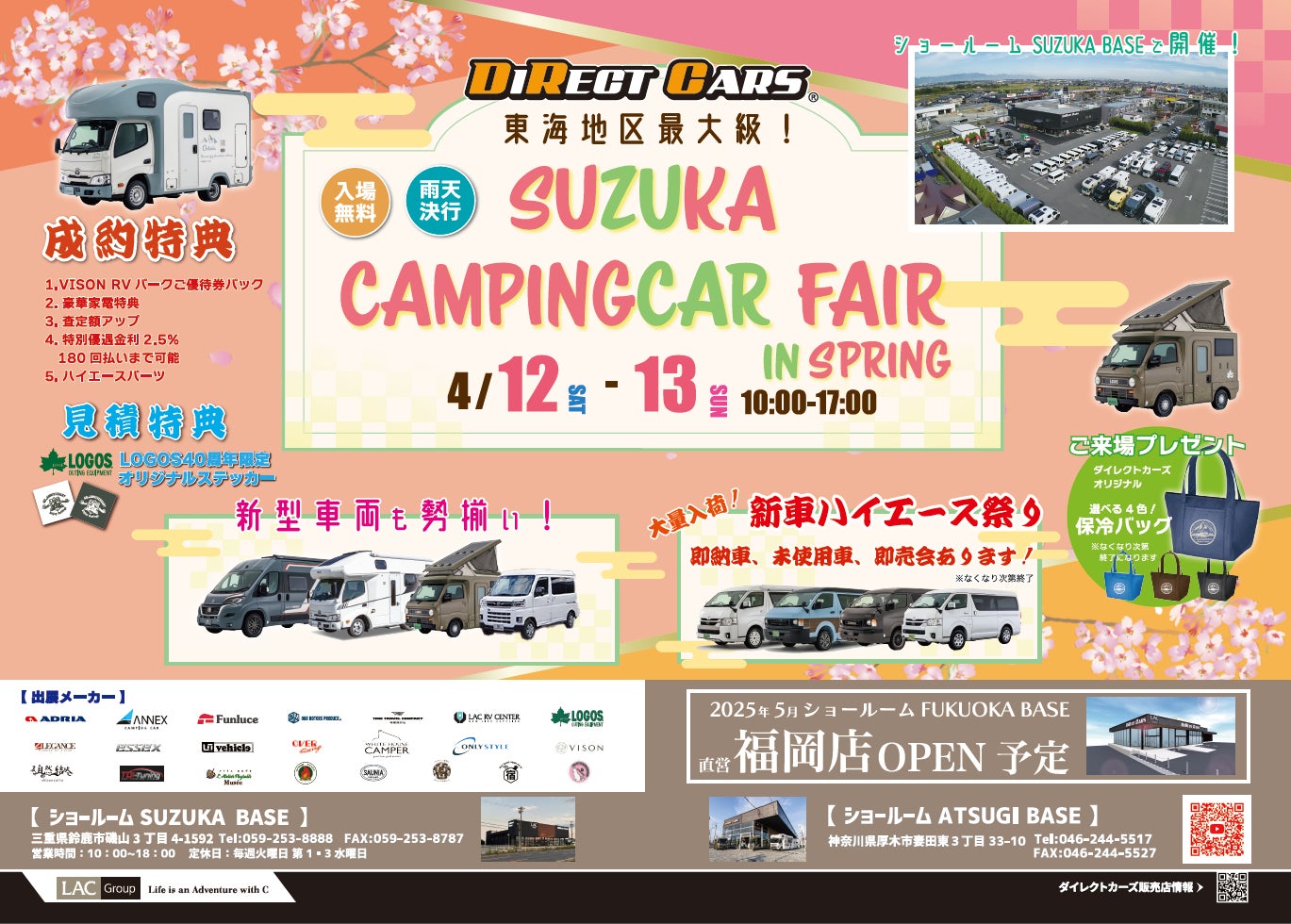 国内最大級のキャンピングカーショールーム・ダイレクトカーズ ショールームSUZUKA BASEにて「鈴鹿キャンピングカーフェア IN SPRING2025」を開催!