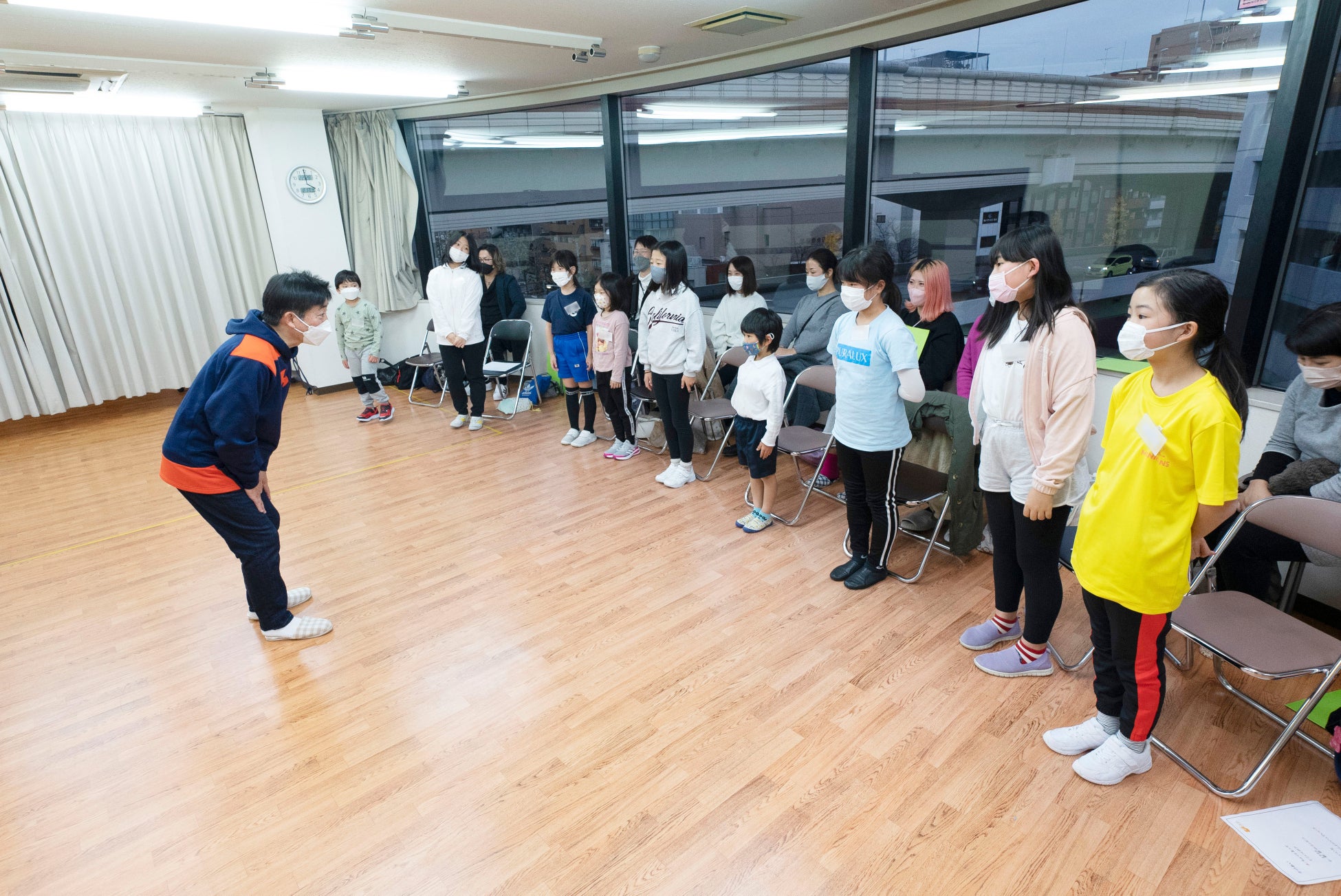 全員が集まるまで、待っている子どもたちに講師の水島裕さんが一人一人に声をかける。参加対象は小学1年生~6年生の男女。裕さんとの会話で、歳の離れている子たちも少しずつ緊張がほぐれてくる様子。