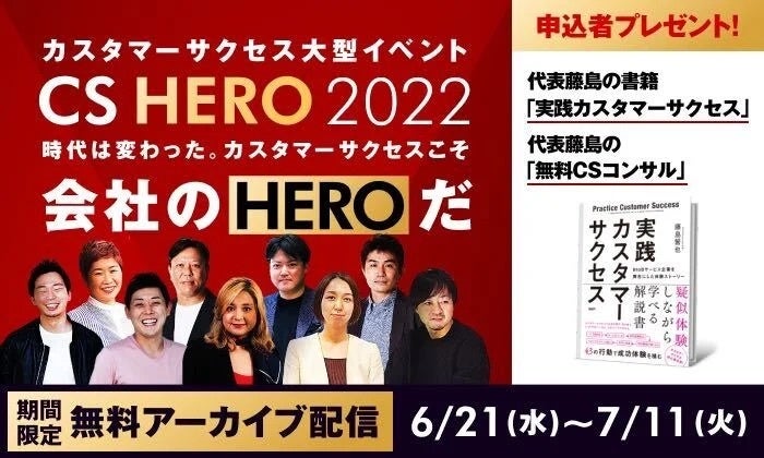 CSをはじめ、顧客DXの啓蒙活動を行ってきた当社として、大変嬉しく思っております。そこで、番組出演を記念し、期間限定で昨年12月に開催した日本最大級のカスタマーサクセスイベント『CS HERO 2022 時代は変わった。カスタマーサクセスこそ、会社のHEROだ。』を期間限定でアーカイブ配信いたします。